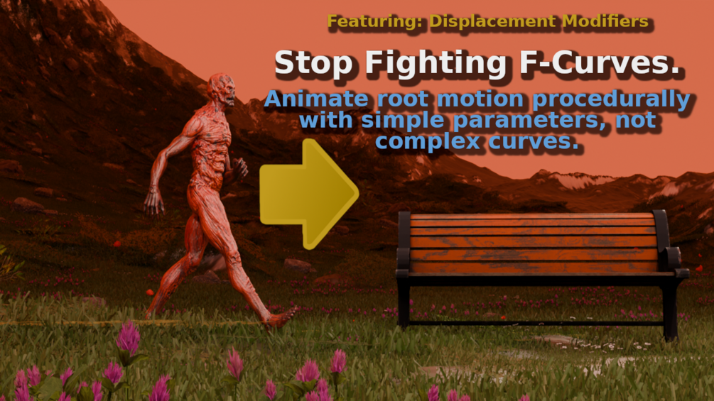 Animating root motion --such as a character walking across a room or a vehicle driving down a road-- can be a tedious process. Traditionally, this requires careful keyframing of the root bone in the Graph Editor. Adjusting the speed or distance later involves tweaking F-Curve slopes, which is often unintuitive, time-consuming, and difficult to make consistent across multiple animation strips.