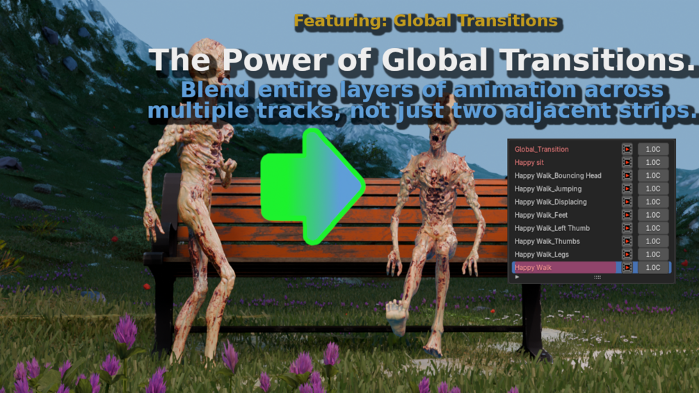 Animation Editor Pro'sGlobal Transitionsfeature is designed to solve this problem. It treats your entire animation stack as a single, cohesive unit, allowing you to create powerful, unified blends with one command (see video above).