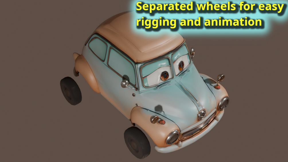 The asset is packaged with a complete set of high-resolution 4K PBR textures, which perfectly render the vehicle's classic two-tone finish, gentle weathering, and endearing character details. Built for efficiency, the model features clean topology and an optimized tris count, guaranteeing smooth performance without sacrificing its distinctive silhouette. Designed with animators in mind, the asset is structured for intuitive use, featuring separated wheels for easy rigging and animation. Ideal for a leading role in an animation, a memorable character in a stylized game, or a delightful portfolio piece, this vintage car is technically polished and ready for the spotlight.