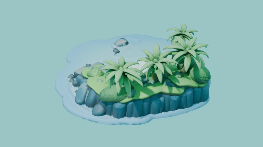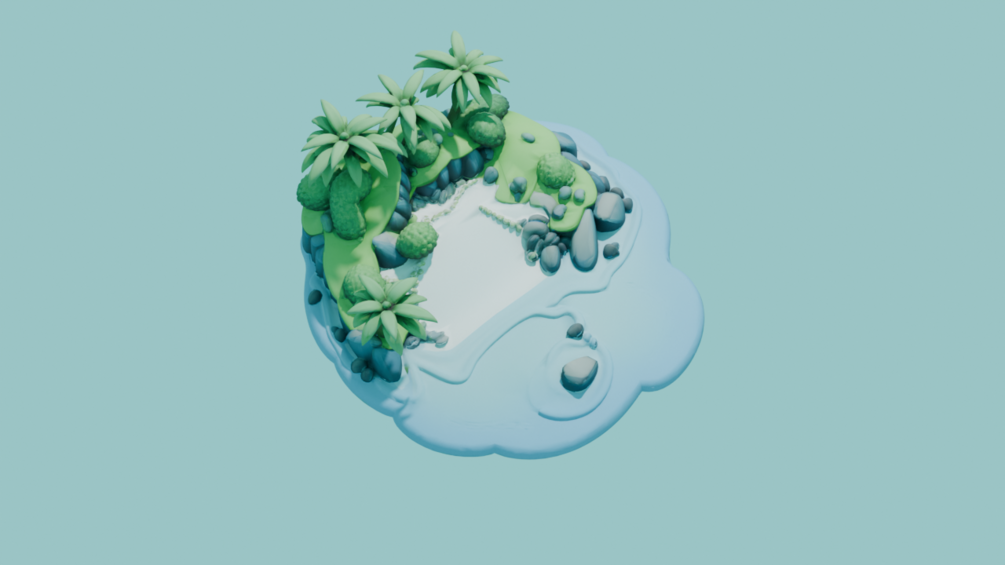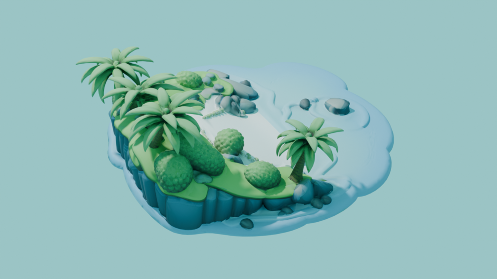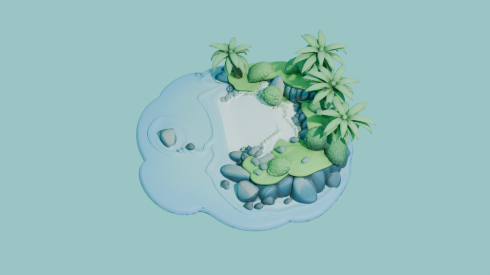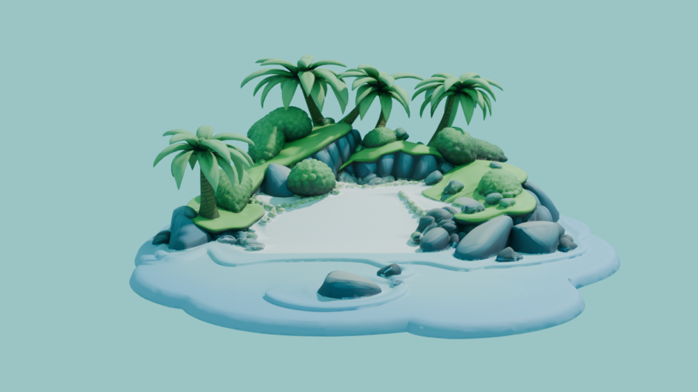 A 3D model of a vibrant, stylized tropical island, perfect for your next game or animation project. This high-quality, game-ready asset is beautifully crafted with lush palm trees, smooth rocks, and a serene sandy path. It's ideal for creating an inviting and picturesque environment in your digital world. Download this 3D island scene today and bring a piece of paradise to your creation.